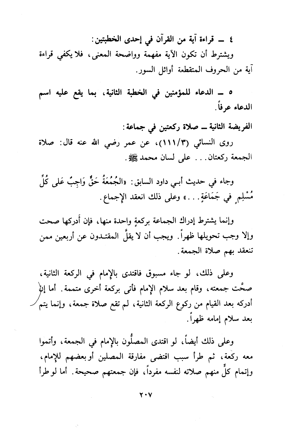 روى النسائي (3/ 111)، عن عمر - رضي الله عنه - قال: صلاة الجمعة ركعتان .. على لسان محمد - صلى الله عليه وسلم -.