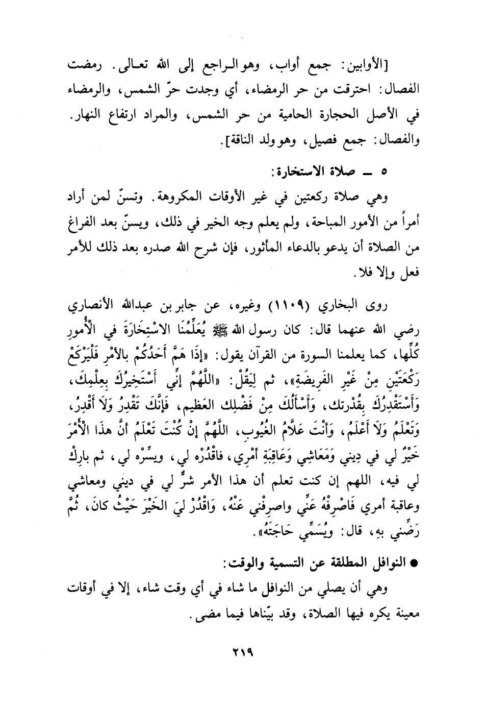 روى البخاري (1109) وغيره، عن جابر بن عبدالله الأنصاري رضي الله عنهما قال: كان رسول الله - صلى الله عليه وسلم - يعلمنا الاستخارة في الأمور كلها، كما يعلمنا السورة من القرآن يقول: " إذا هم أحدكم بالأمر فليركع ركعتين من غير الفريضة"، ثم ليقل: " اللهم إني أستخيرك بعلمك، وأستقدرك بقدرتك، وأسألك من فضلك العظيم، فإنك تقدر ولا أقدر، وتعلم ولا أعلم، وأنت علاّم الغيوب، اللهم إن كنت تعلم أن هذا الأمر خير لي في ديني ومعاشي وعاقبة أمري، فأقدره لي، ويسره لي، ثم بارك لي فيه، اللهم إن كنت تعلم أن هذا الأمر شر لي في ديني ومعاشي وعاقبة أمري فاصرفه عني واصرفني عنه، واقدر لي الخير حيث كان، ثم رضني به، قال: ويسمي حاجته ".