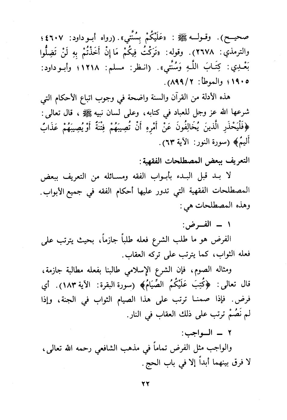 لا بد قبل البدء بأبواب الفقه ومسائله من التعريف ببعض المصطلحات الفقهية التي تدور عليها أحكام الفقه في جميع الأبواب وهذه المصطلحات هي: