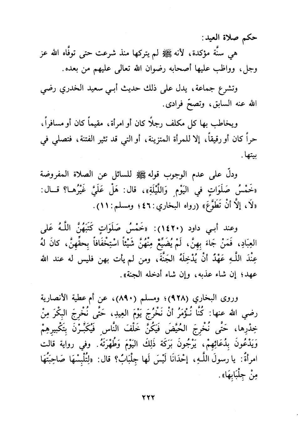 وروى البخاري (928)؛ ومسلم (890)، عن أم عطية الأنصارية رضي الله عنها: كنّا نؤْمرُ أن نخرُج يوم العِيد، حتى نُخرج البِكْرَ من خُدرها، حتى نخرج الحيض فَيكنَّ خَلفَ النّاس فيكبرن بتكبيرهم ويدعون بدعائهم، يرجون بركة ذلك اليوم وطُهْرَتَه. وفي رواية قالت امرأة: يا رسول الله، إحدانا ليس لها جلباب؟ قال: " لتلبسها صاحبتها من جلبابها ".