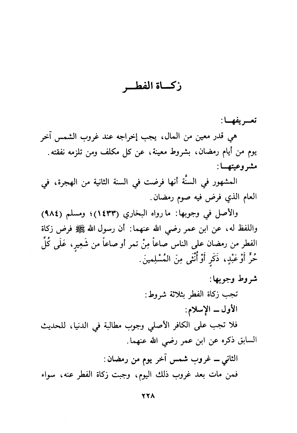 هي قدر معين من المال، يجب إخراجه عند غروب الشمس آخر يوم من أيام رمضان، بشروط معينة، عن كل مكلف ومن تلزمه نفقته.