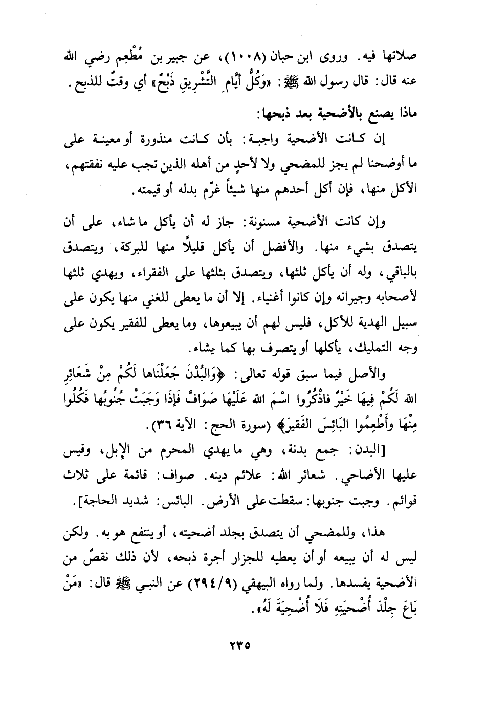 صلاتها فيه. وروى ابن حبان (1008)، عن جبير بن مطعم - رضي الله عنه - قال: قال رسول الله - صلى الله عليه وسلم -: " وكل أيام التشريق ذبح " أي وقت للذبح.