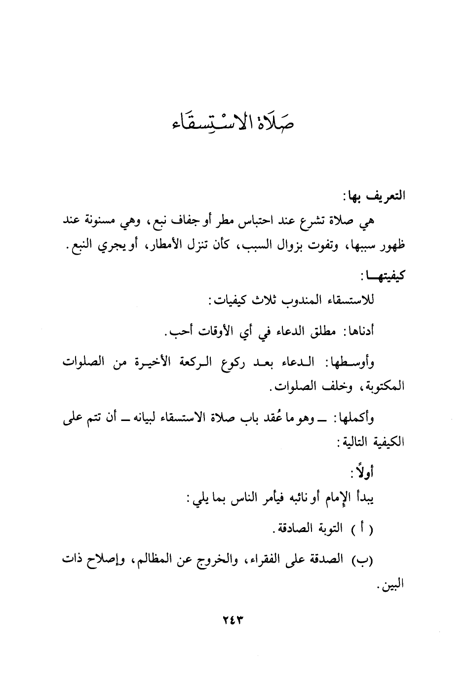 وأكملها: - وهو ما عقد باب صلاة الاستسقاء لبيانه- أن تتم على الكيفية التالية: