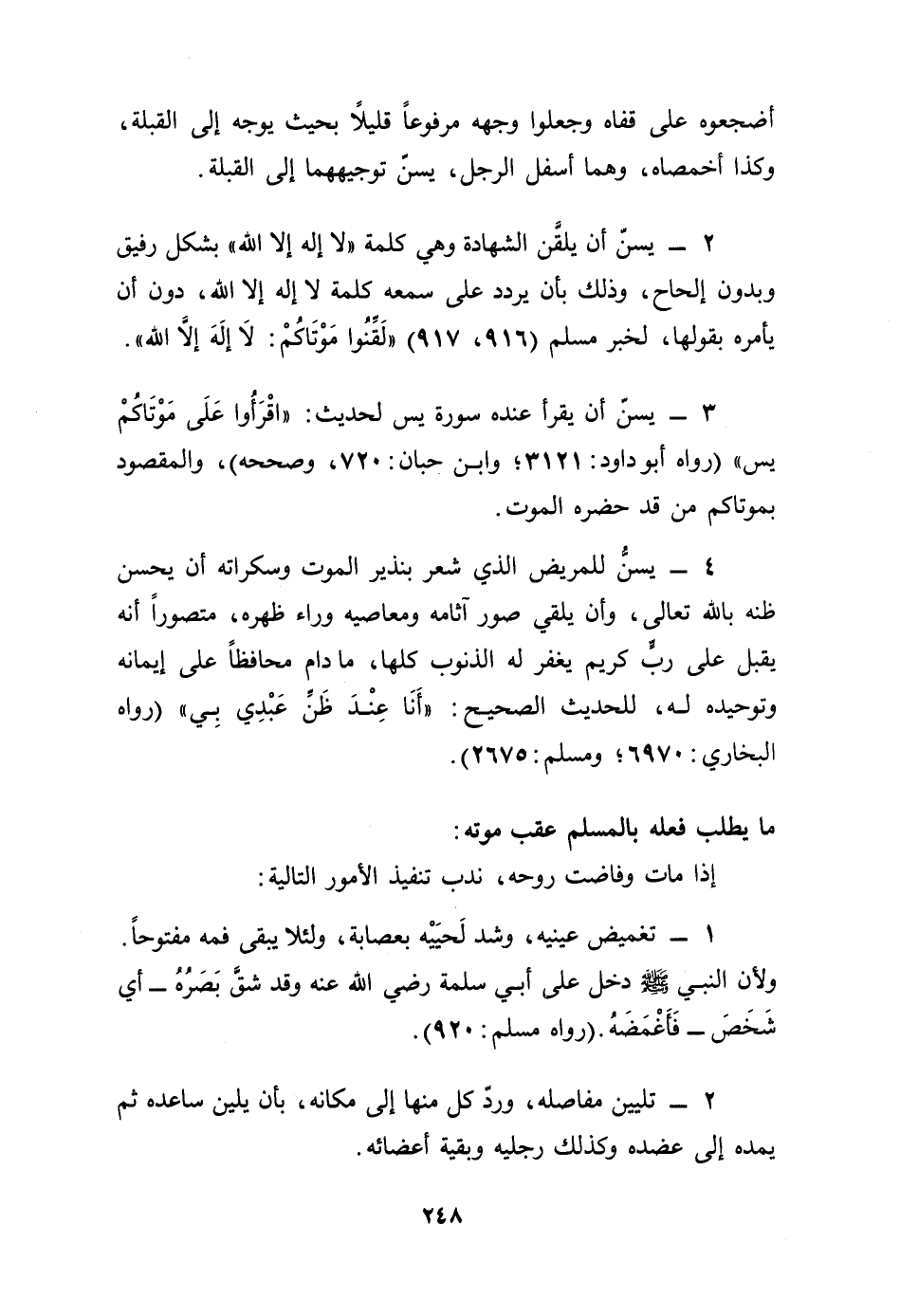 إذا مات وفاضت روحه، ندب تنفيذ الأمور التالية: