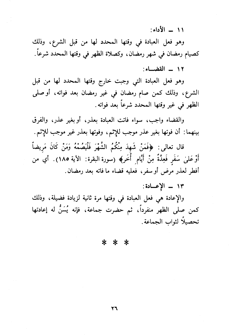 وهو فعل العبادة في وقتها المحدد لها من قبل الشرع، وذلك كصيام رمضان في شهر رمضان، وكصلاة الظهر في وقتها المحدد شرعاً.