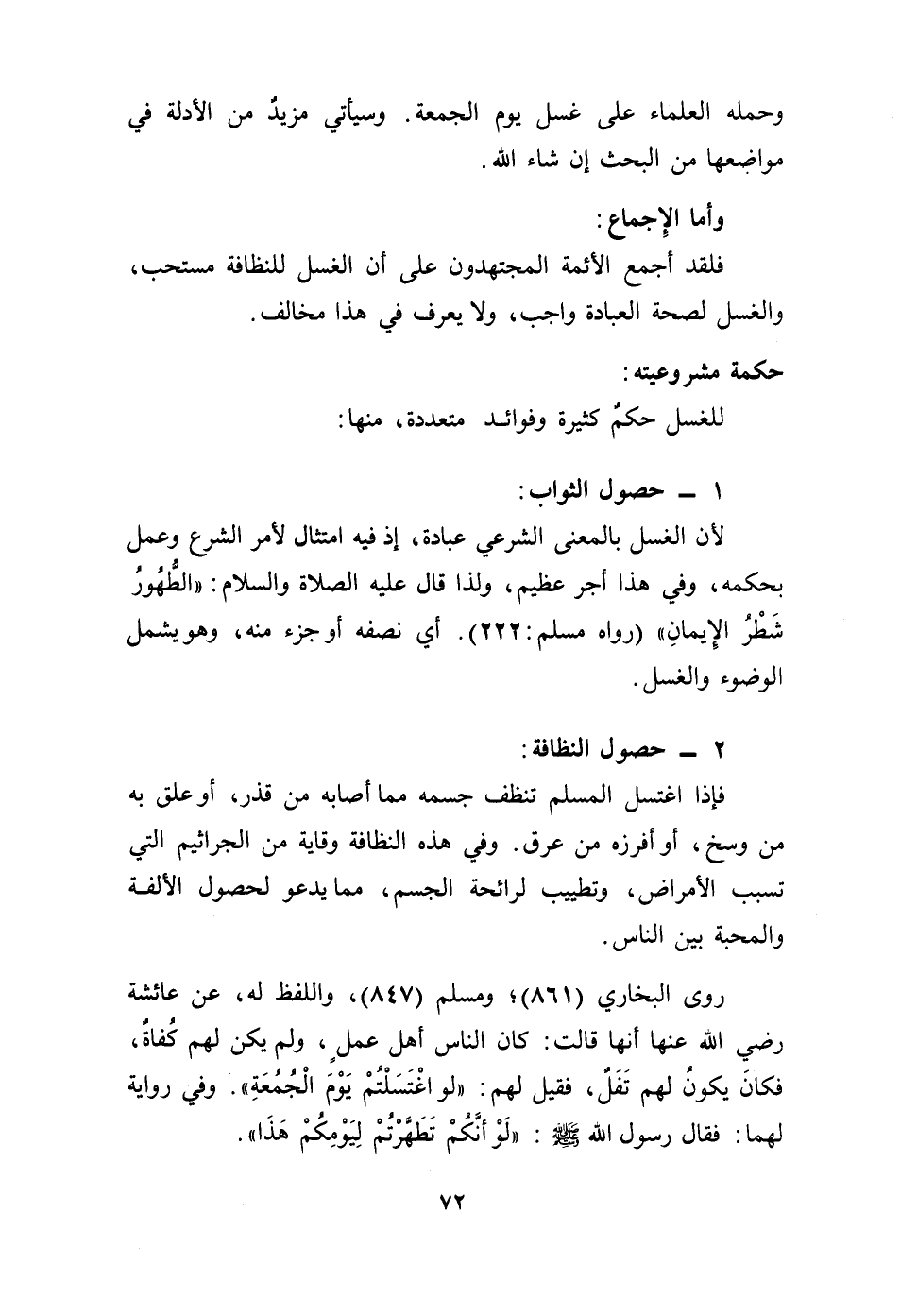 روى البخاري (861)، ومسلم (847)، واللفظ له، عن عائشة رضي الله عنها قالت: كان الناس أهل عمل، ولم يكن لهم كفاة، فكان يكون لهم تفل، فقيل لهم: " لو اغتسلتم يوم الجمعة ". وفي رواية لهما: فقال رسول الله - صلى الله عليه وسلم -: " لو أنكم تطهرتم ليومكم هذا ".