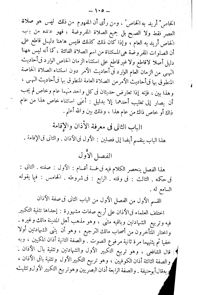 القسم الأول من الفصل الأول من الباب الثاني في صفة الأذان