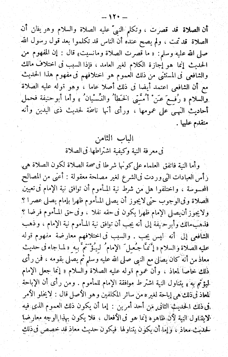 الباب الثامن في معرفة النية وكيفية اشتراطها في الصلاة