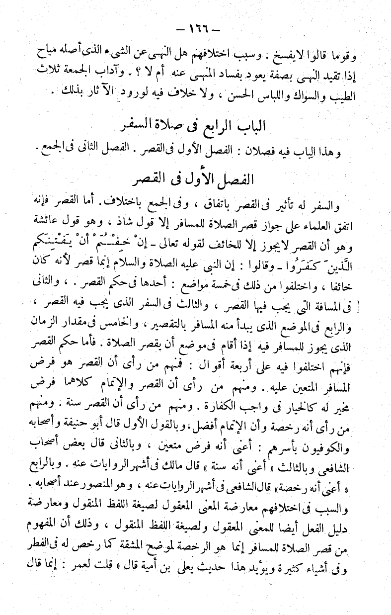 وهذا الباب فيه فصلان: الفصل الأول في القصر. الفصل الثاني في الجمع.