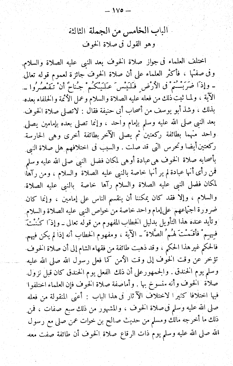 الباب الخامس من الجملة الثالثة وهو القول في صلاة الخوف