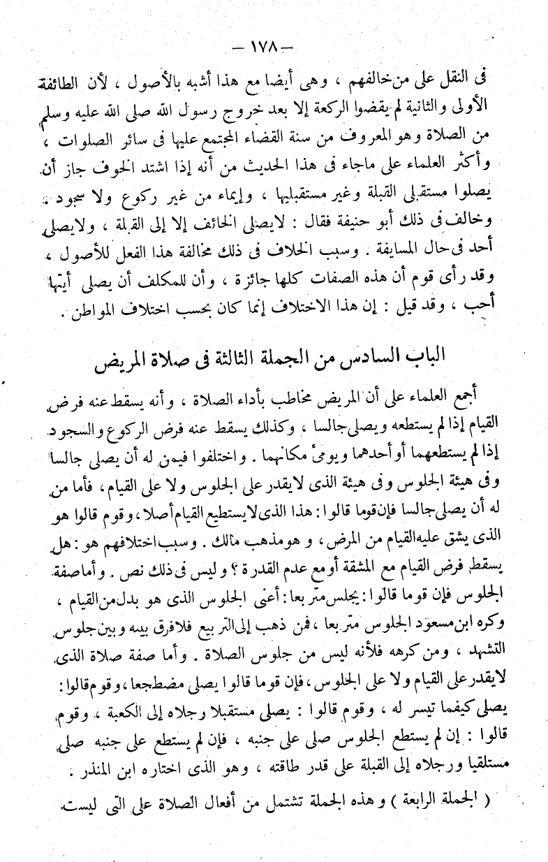 الباب السادس من الجملة الثالثة في صلاة المريض