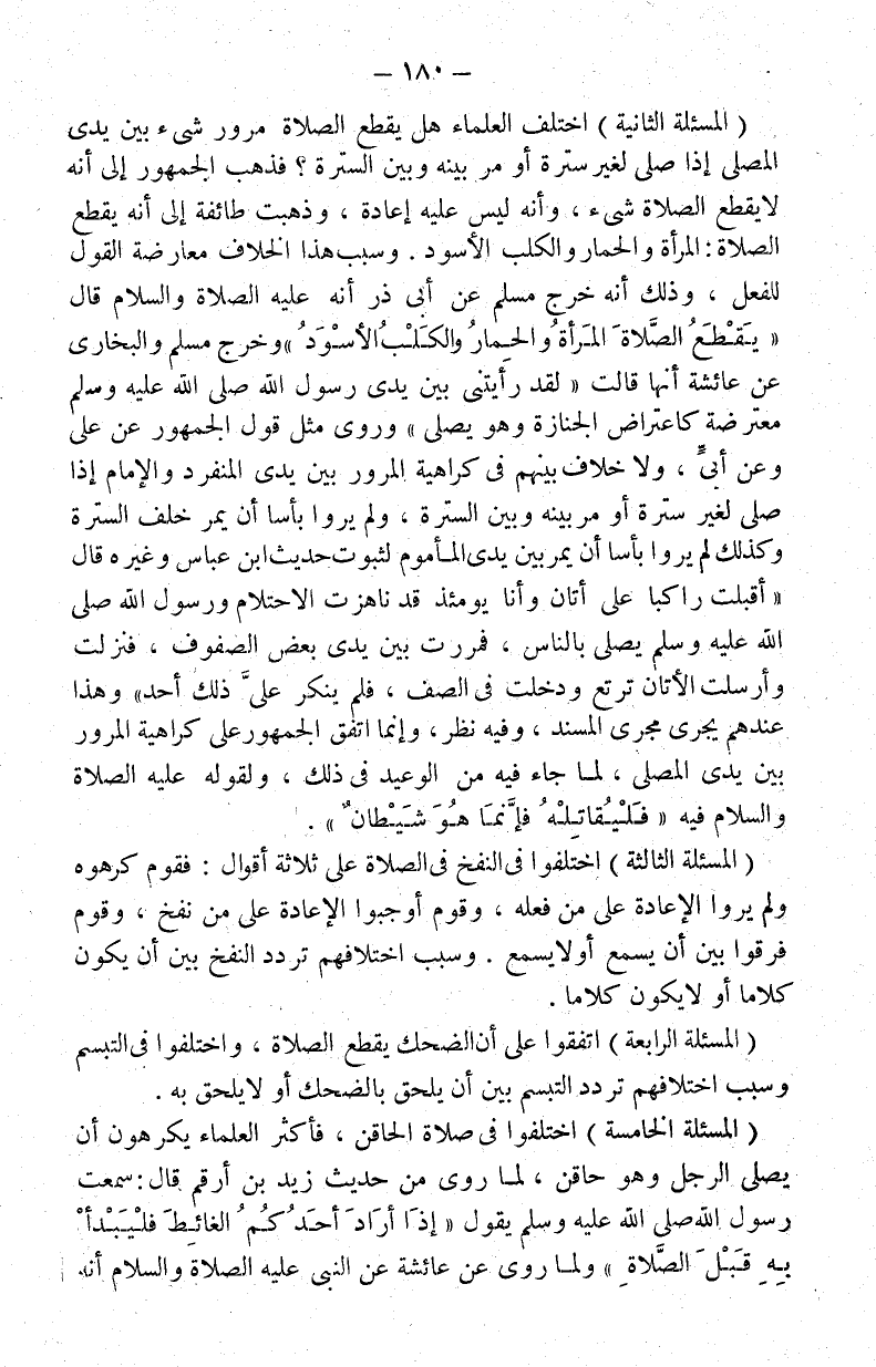 المسألة الرابعة : اتفقوا على أن الضحك يقطع الصلاة واختلفوا في التبسم وسبب اختلافهم تردد التبسم بين أن يلحق بالضحك أو لا يلحق به.