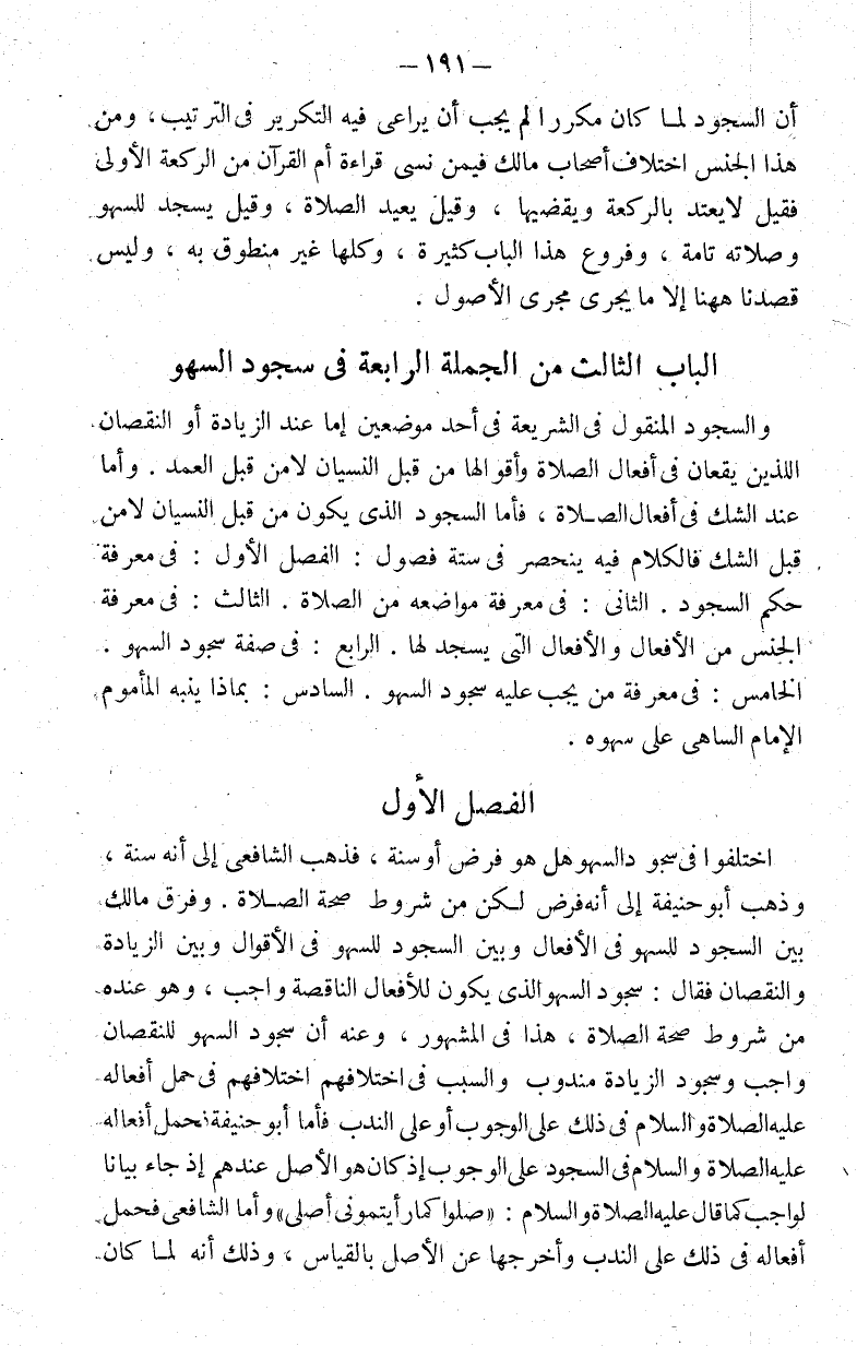الفصل الأول: في سجود السهو