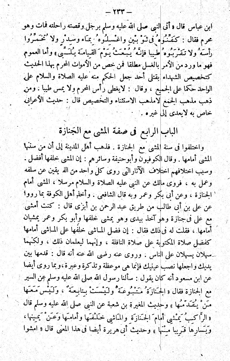 واختلفوا في سنة المشي مع الجنازة. فذهب أهل المدينة إلى أن من سننها المشي أمامها. وقال الكوفيون وأبو حنيفة وسائرهم: إن المشي خلفها أفضل. وسبب اختلافهم اختلاف الآثار التي روى كل واحد من صليت عن سلفه وعمل به فروى مالك عن النبي عليه الصلاة والسلام مرسلا المشي أمام الجنازة وعن أبي بكر وعمر وبه قال الشافعي. وأخذ أهل الكوفة بما رووا عن علي ابن أبي طالب من طريق عبد الرحمن ابن أبزى قال: كنت أمشي مع علي في جنازة وهو آخذ بيدي وهو يمشي خلفها و أبو بكر وعمر يمشيان أمامها فقلت له في ذلك فقال: إن فضل الماشي خلفها على الماشي أمامها كفضل صلاة المكتوبة على صلاة النافلة وإنهما ليعلمان ذلك ولكنهما سهلان يسهلان على الناس. وروي عنه رضي الله عنه أنه قال: قدمها بين يديك واجعلها نصب عينيك فإنما هي موعظة وتذكرة وعبرة وبما روي أيضا عن ابن مسعود أنه كان يقول: سألنا رسول الله صلى الله عليه وسلم عن السير مع الجنازة فقال: "الجنازة متبوعة وليست بتابعة وليس معها من يقدمها" وحديث المغيرة بن شعبة عن النبي صلى الله عليه وسلم قال: "الراكب يمشي أمام الجنازة والماشي خلفها وأمامها وعن يمينها أو عن يسارها قريبا منها" وحديث أبي هريرة أيضا في هذا المعنى قال: "امشوا
