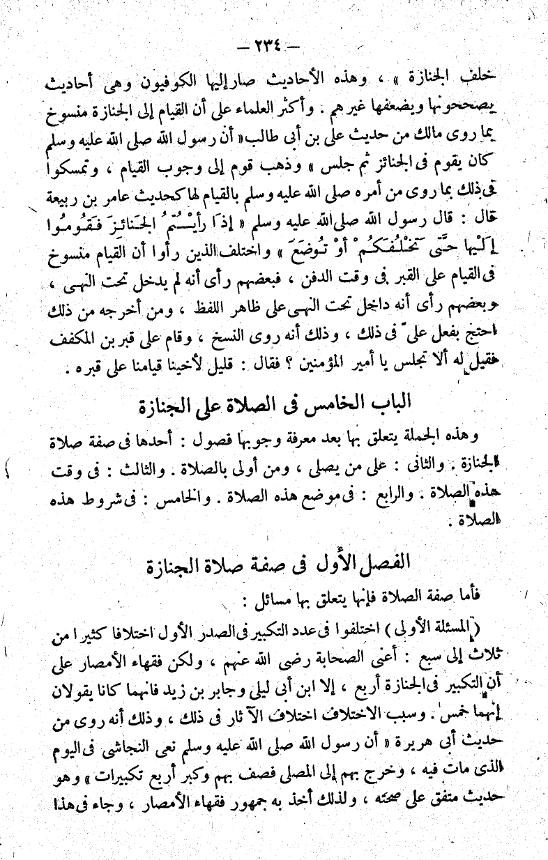 الباب الخامس: في الصلاة غلى الجنازة