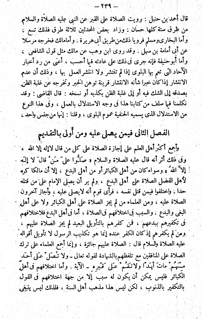 الفصل الثاني فيمن يصلى عليه ومن أولى بالتقديم