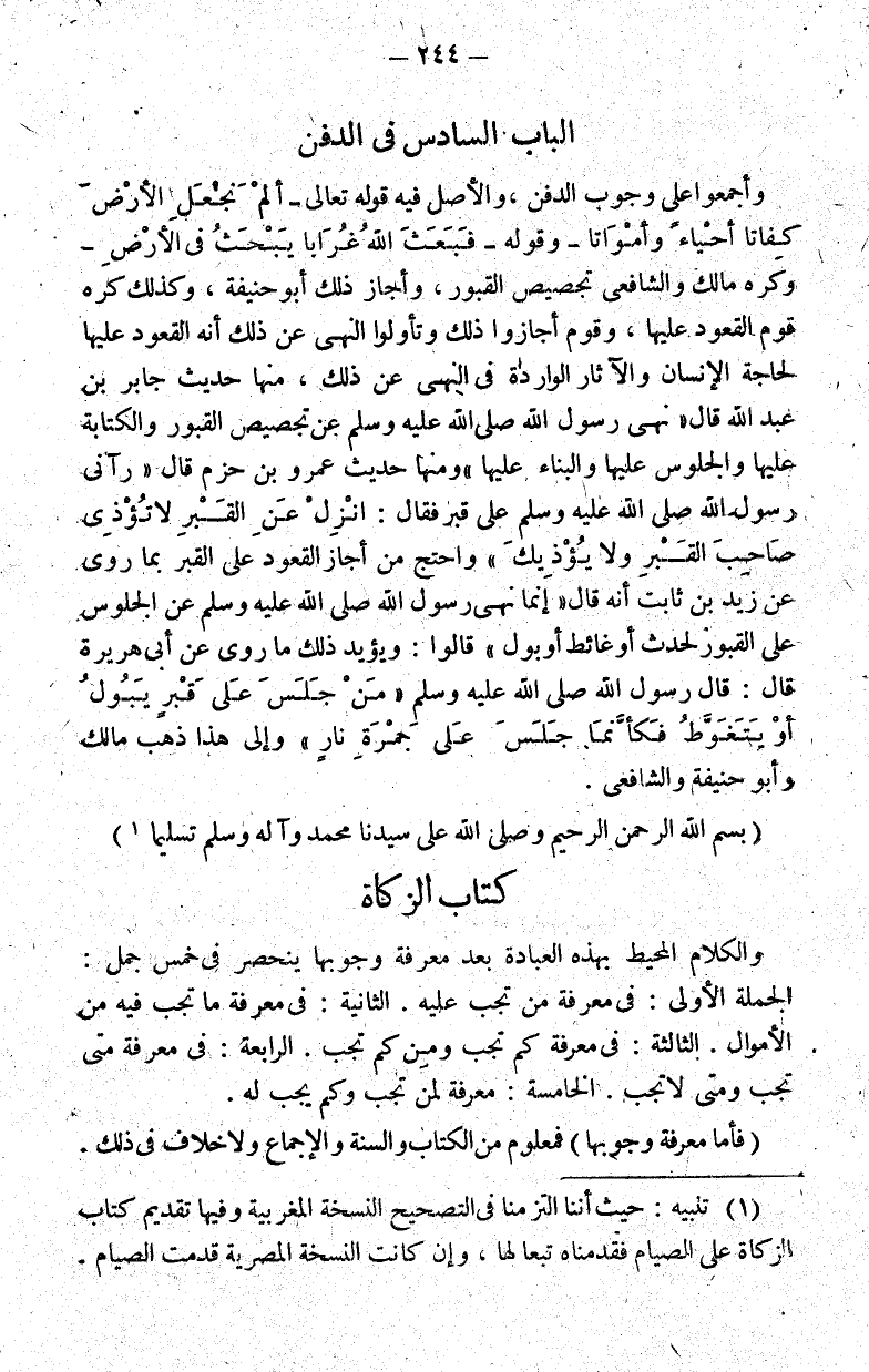 1 تنبيه: حيث أننا التزمنا في التصحيح النسخة المغربية وفيها تقديم كتاب الزكاة على الصيام فقدمناه تبعا لها, وإن كانت النسخة المصرية قدمت الصيام.