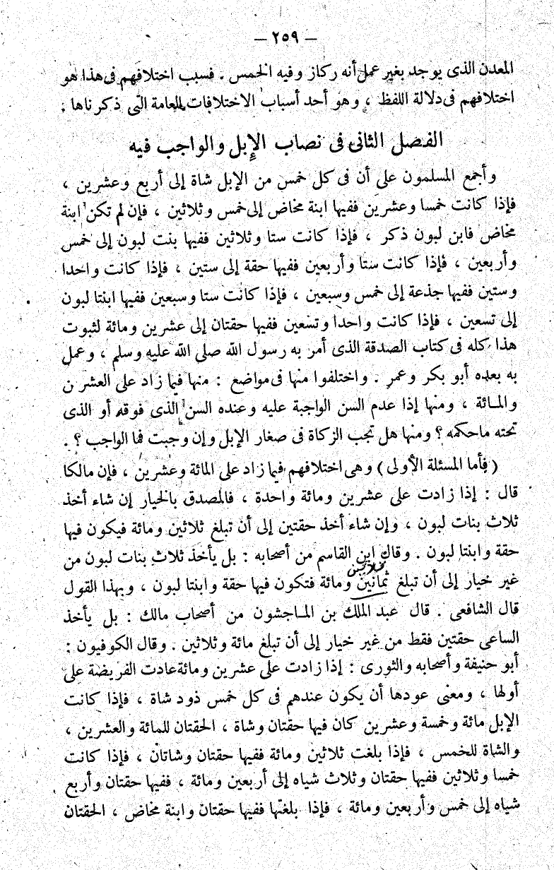 الفصل الثاني في نصاب الإبل والواجب فيه