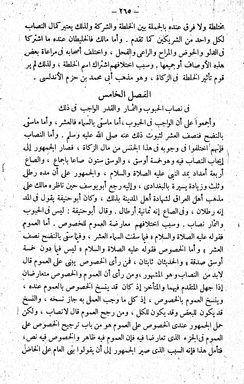 الفصل الخامس في نصاب الحبوب والثمار والقدر الواجب في ذلك