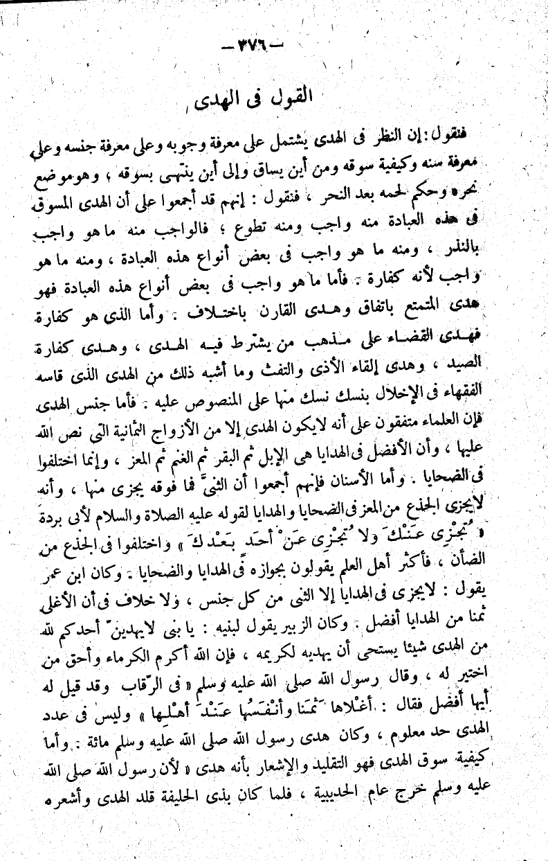 فنقول إن النظر في الهدي يشتمل على معرفة وجوبه وعلى معرفة جنسه وعلى معرفة سنه وكيفية سوقه ومن أين يساق وإلى أين ينتهي بسوقه وهو موضع نحره وحكم لحمه بعد النحر فنقول: إنهم قد أجمعوا على أن الهدي المسوق في هذه العبادة منه واجب ومنه تطوع فالواجب منه ما هو واجب بالنذر ومنه ما هو واجب في بعض أنواع هذه العبادة ومنه ما هو واجب لأنه كفارة. فأما ما هو واجب في بعض أنواع هذه العبادة فهو هدي المتمتع باتفاق وهدي القارن باختلاف. وأما الذي هو كفارة فهدي القضاء على مذهب من يشترط فيه الهدي وهدي كفارة الصيد وهدي إلقاء الأذى والتفث وما أشبه ذلك من الهدي الذي قاسه الفقهاء في الإخلال بنسك نسك منها على المنصوص عليه. فأما جنس الهدي فإن العلماء متفقون على أنه لا يكون الهدي إلا من الأزواج الثمانية التي نص الله عليها وأن الأفضل في الهدايا هي الإبل ثم البقر ثم الغنم ثم المعز وإنما اختلفوا في الضحايا. وأما الأسنان فإنهم أجمعوا أن الثني فما فوقه يجزي منها وأنه لا يجزي الجذع من المعز في الضحايا والهدايا لقوله عليه الصلاة والسلام لأبي بردة: "تجزي عنك ولا تجزي عن أحد بعدك" واختلفوا في الجذع من الضأن فأكثر أهل العلم يقولون بجوازه في الهدايا والضحايا. وكان ابن عمر يقول: لا يجزي في الهدايا إلا الثني من كل جنس ولا خلاف في أن الأغلى ثمنا من الهدايا أفضل. وكان الزبير يقول لبنيه: يا بني لا يهدين أحدكم لله من الهدي شيئا يستحي أن يهديه لكريمه فإن الله أكرم الكرماء وأحق من اختير له وقال رسول الله صلى الله عليه وسلم: "في الرقاب" وقد قيل له أيها أفضل فقال: "أغلاها ثمنا وأنفسها عند أهلها" وليس في عدد الهدي حد معلوم وكان هدي رسول الله صلى الله عليه وسلم مائة. وأما كيفية سوق الهدي فهو التقليد والإشعار بأنه هدي لأن رسول الله صلى الله عليه وسلم خرج عام الحديبية فلما كان بذي الحليفة قلد الهدي وأشعره