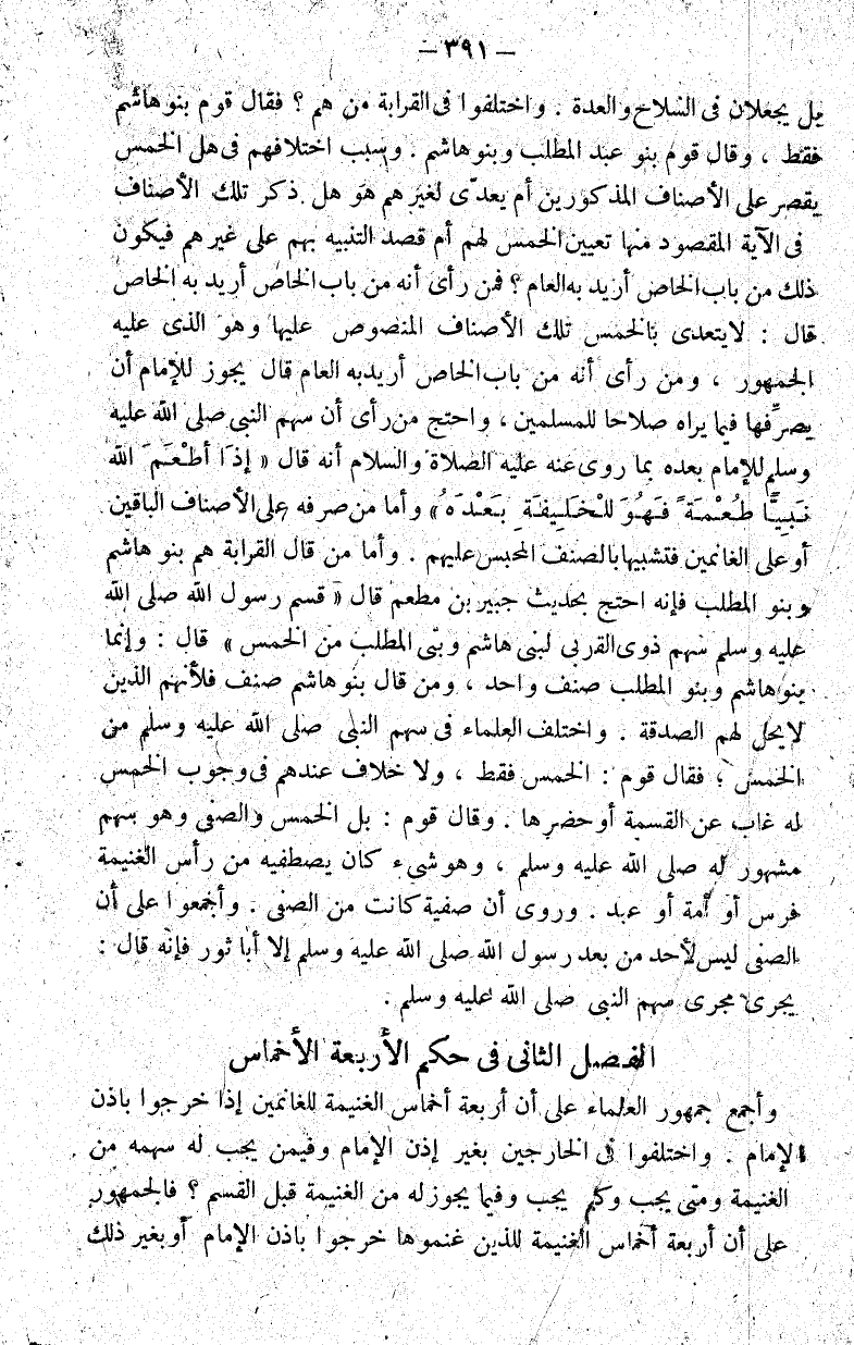 الفصل الثاني في حكم الأربعة الأخماس