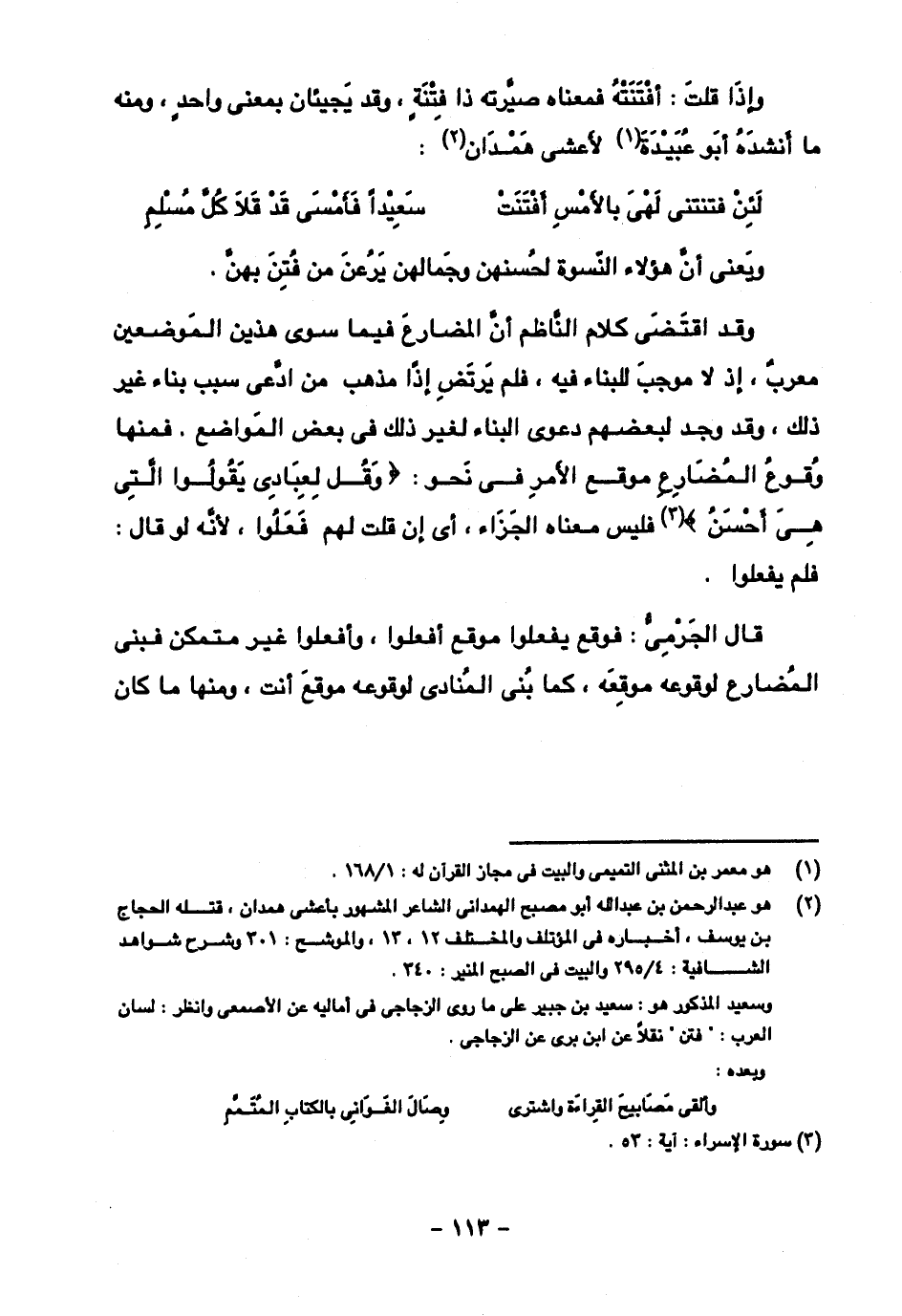 وإذا قلت: أفْتَنَتْهُ فمعناه صيَّرته ذا فتنة, وقد يجيئان بمعنى واحد, ومنه ما أنشده أبو عبيدة لأعشى هَمْدان: