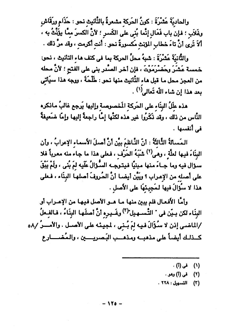 هذه علل البناء على الحركة المخصوصة وإليها يرجع غالب ما ذكره الناس من ذلك، وقد ذكروا غير هذه لكنها إما راجعة إليها وإما ضعيفة في أنفسها.