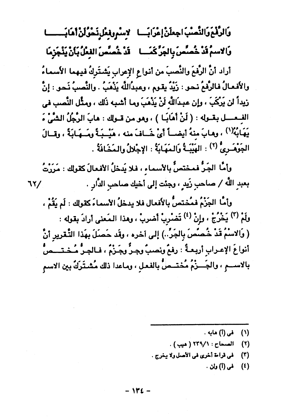 أراد أن الرفع والنصب من أنواع الإعراب يشترك فيهما الأسماء والأفعال فالرفع نحو: زيد يقوم، وعبد الله يذهب، والنصب نحو: إن زيدا لن يركب، وإن عبدالله لن يذهب وما أشبه ذلك، ومثل النصب في الفعل بقوله: (لن أهابا)، وهو من قولك: هاب الرجل الشيء يهابه، وهاب منه أيضا أي خاف منه، هيبة ومهابة، وقال الجوهري: الهيبة والمهابة: الإجلال والمخافة.