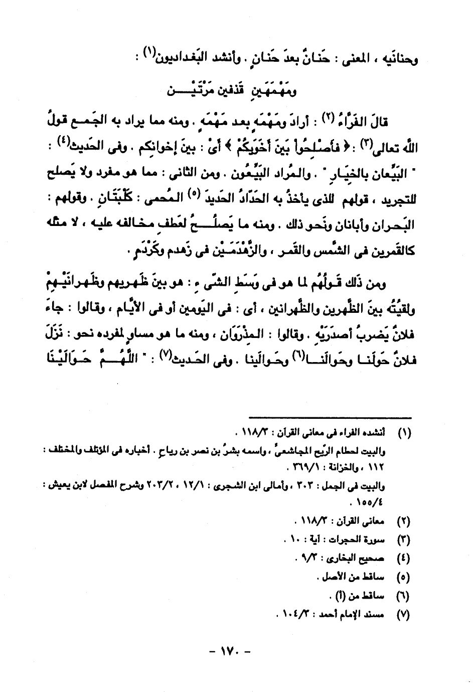 وحنانيه، المعنى: حنان بعد حنان. وأنشد البغداديون: