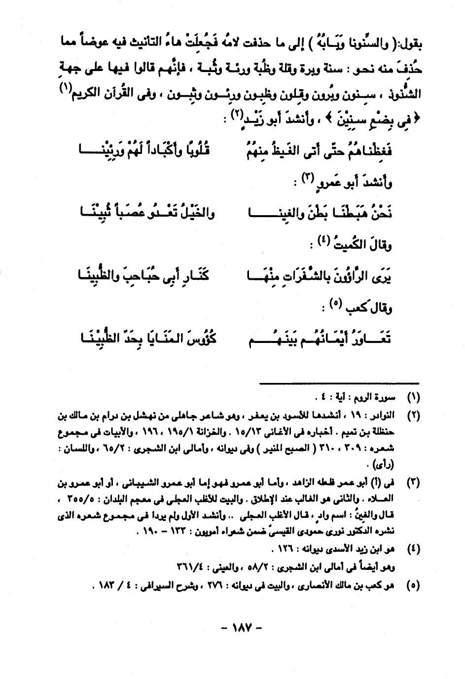 بقول: (والسنونا وبابه) إلى ما حذفت لامه فجعلت هاء التأنيث فيه عوضا مما حذف منه نحو: سنة وبرة قلة وظبة ورئة وثبة، فإنهم قالوا فيها على جهة الشذوذ، سنون ويرون وقلون وظبون ورئون وثبون، وفي القرآن الكريم ((في بضع سنين))، وأنشد أبو زيد: