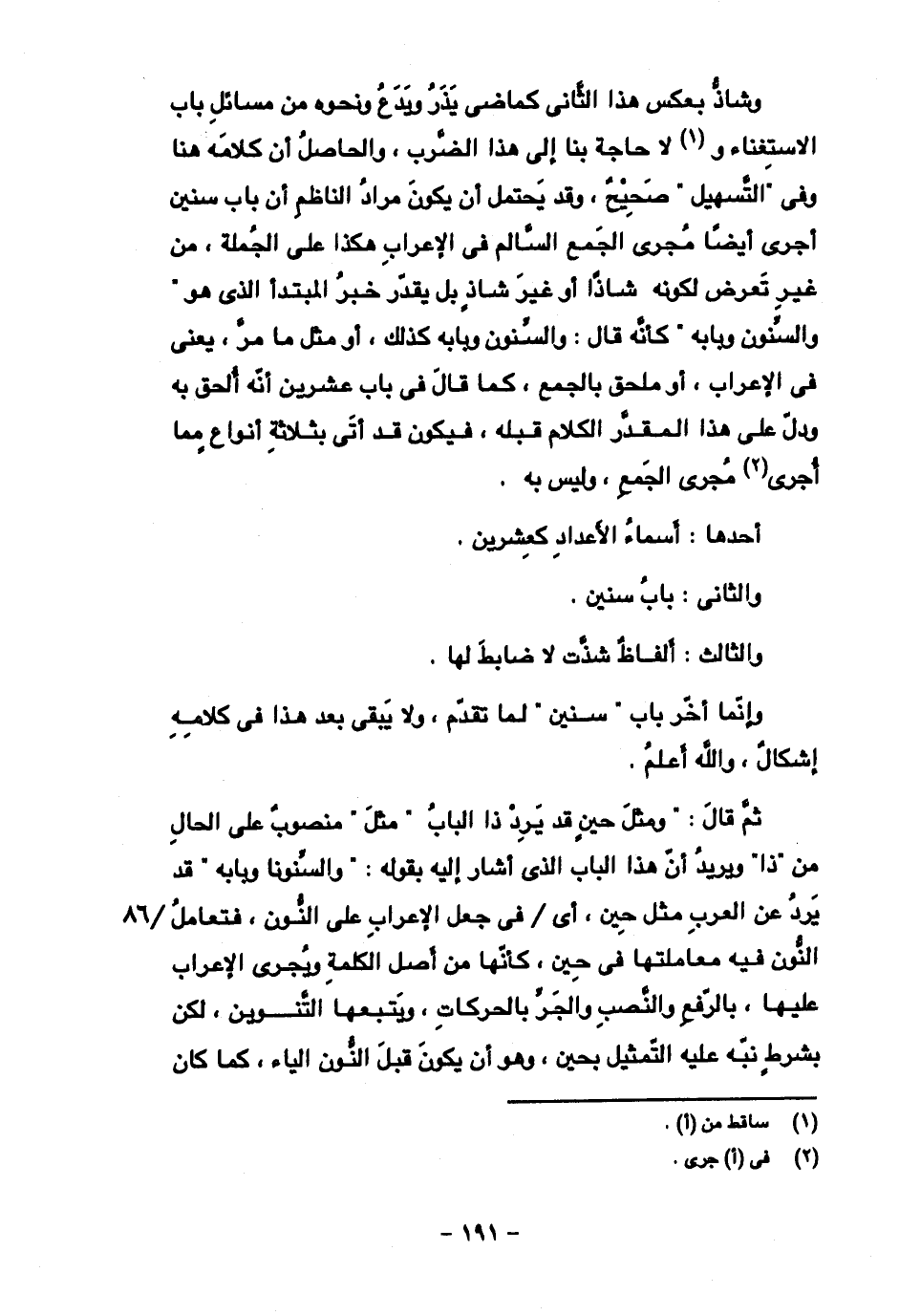وإنما أخر باب "سنين" لما تقدم، ولا يبقى بعد هذا في كلامه إشكال، والله أعلم.