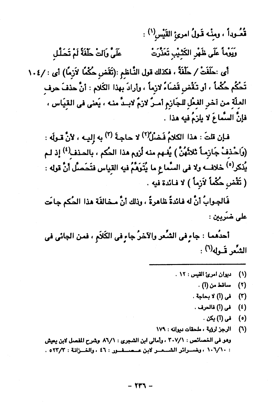 أي: حلفت / حلفة، فكذلك قول الناظم: (تقض حكما لازما) أي: تحكم حكما، أو تقض قضاء لازما، وأراد بهذا الكلام: أن حذف حرف العلة من آخر الفعل للجازم أمر لابد منه، يعني في القياس، فإن السماع لا يلزم فيه هذا.
