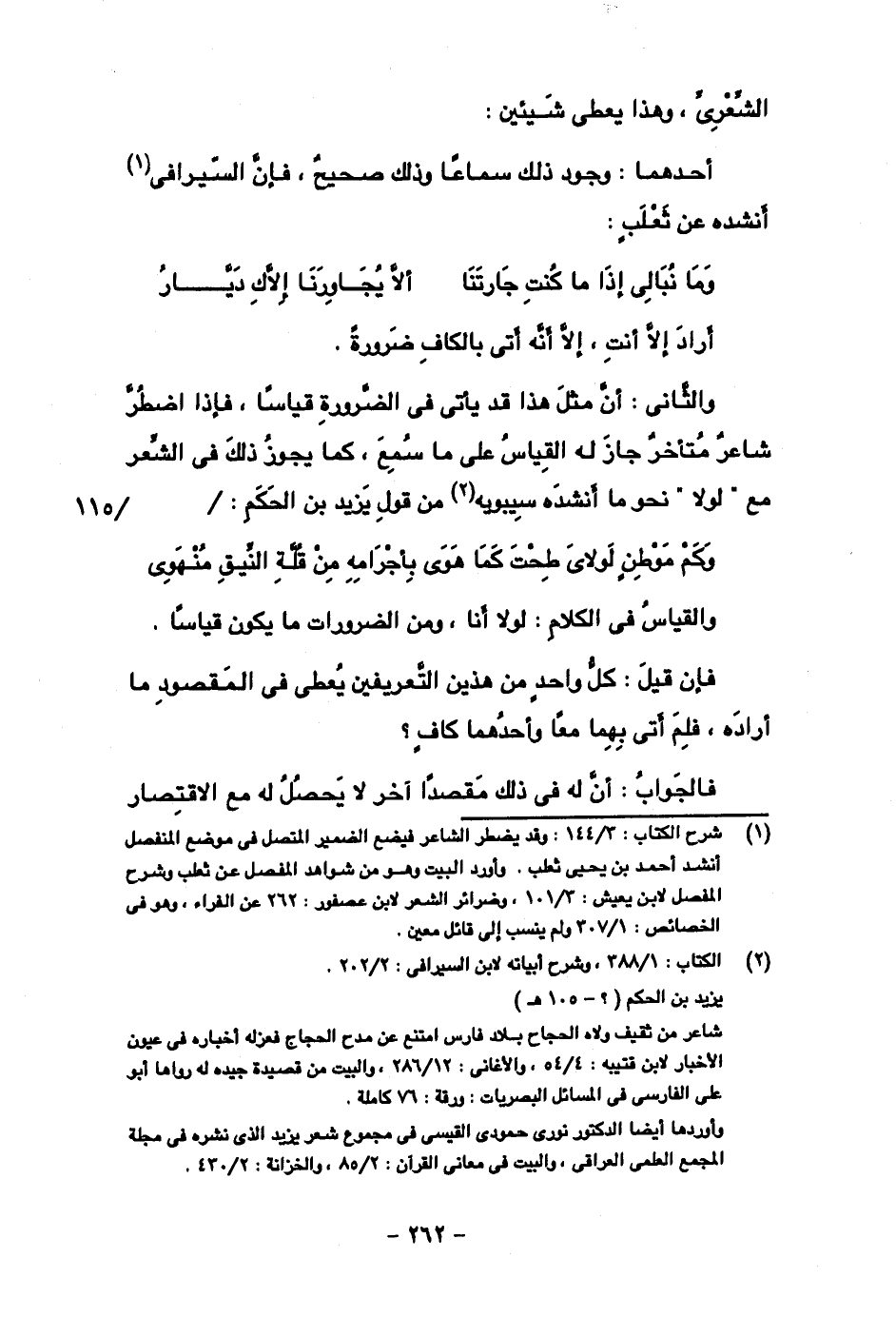 والثاني: أن مثل هذا قد يأتي في الضرورة قياسًا، فإذا اضطر شاعر متأخر جاز له القياس على ما سمع، كما يجوز ذلك في الشعر مع "لولا" نحو ما أنشده سيبويه من قول يزيد بن الحكم: /