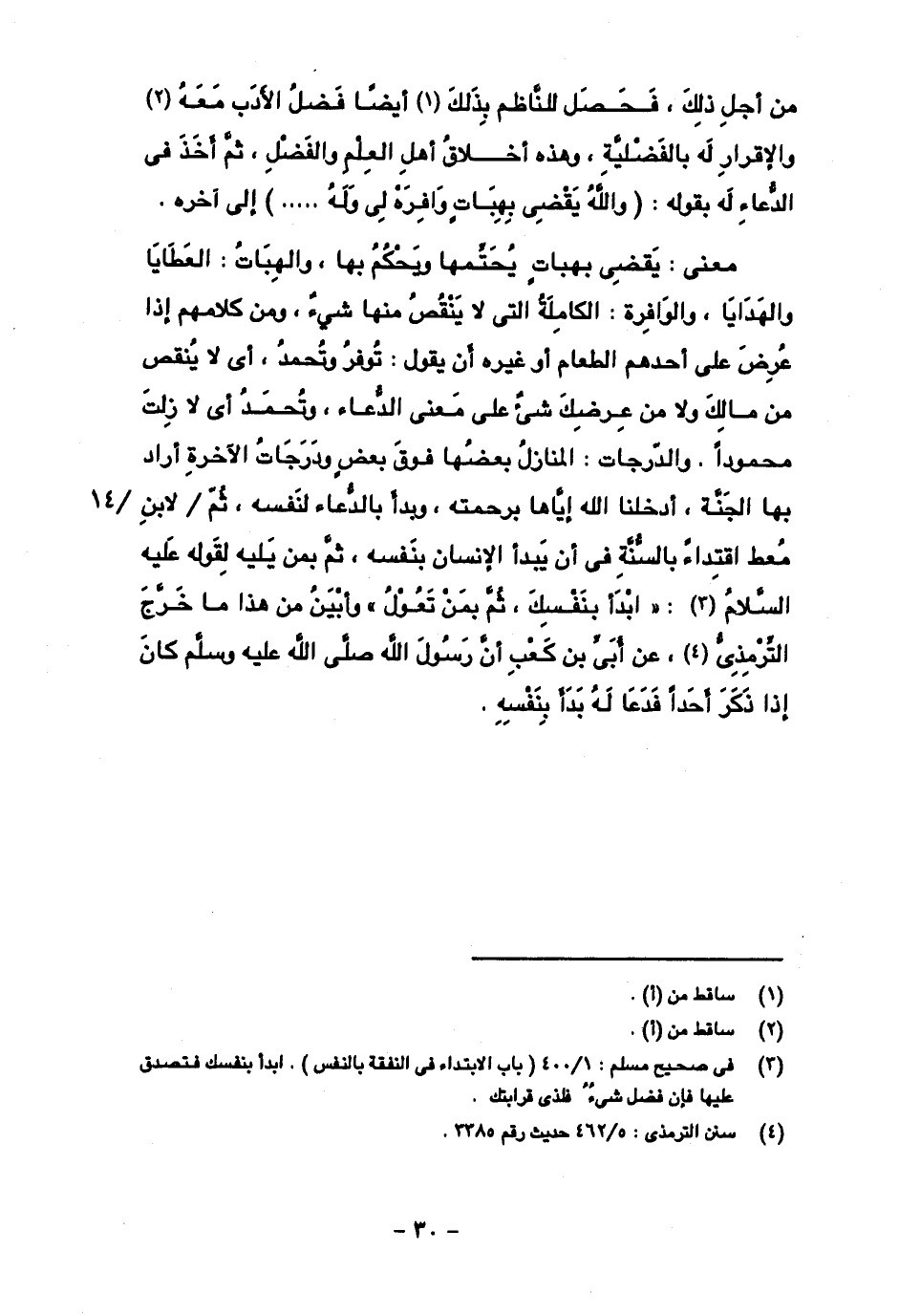 معنى: يقضي بهبات يحتمها ويحكم بها، والهبات: العطايا والهدايا، الوافرة: الكاملة التي لا ينقص منها شيء، ومن كلامهم إذا عرض على أحدهم الطعام أو غيره أن يقول: تُوفر وتُحمد، أي لا يُنقص من مالك ولا من عرضك شيء على معنى الدعاء، وتُحمَدُ أي لازلتَ محمودا. والدرجات: المنازل بعضها فوق بعض ودرجات الآخرة أراد بها الجنة، أدخلنا الله إياها برحمته، وبدأ بالدعاء لنفسه، ثم لابن معط اقتداء بالسنة في أن يبدأ الإنسان بنفسه، ثم بمن يليه لقوله عليه السلام: "ابدأ بنفسك، ثم بمن تعول" وأبين من هذا ما خرّج الترمذي، عن أبي بن كعب أن رسول الله صلى الله عليه وسلم كان إذا ذكر أحدًا فدعا له بدأ بنفسه.
