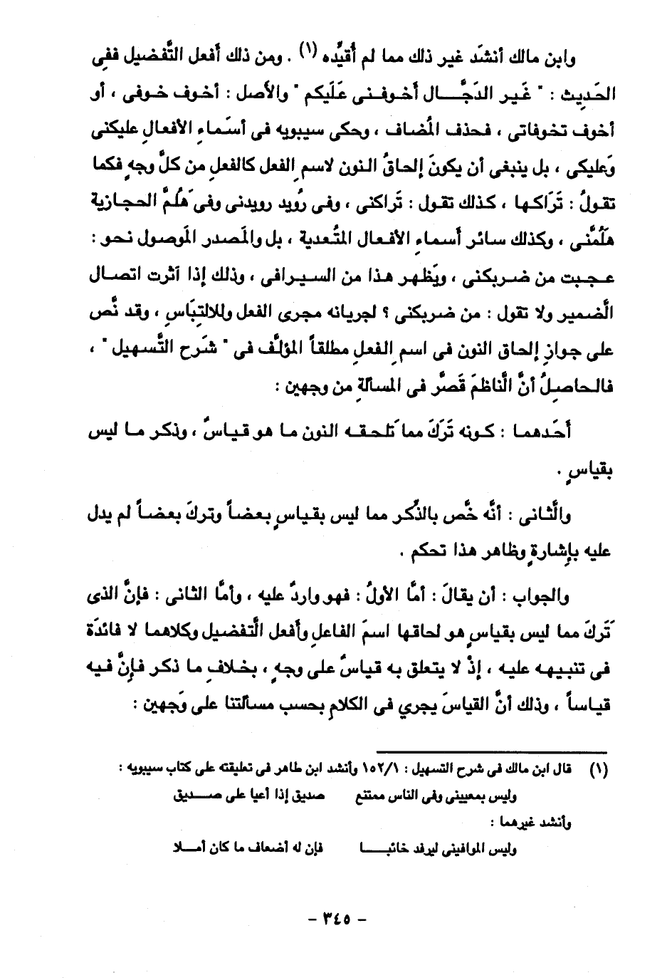أحدهما: كونه ترك مما تلحقه النون ما هو قياس، وذكر ما ليس بقياس.