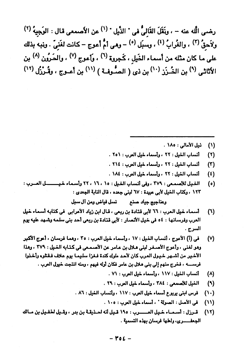 رضي الله عنه-، ونقل القالي في " الذيل" عن الأصمعي قال: الوجيه ولاحق، والغراب، وسبل- وهي أم أعوج- كانت لغني. ونبه بذلك على ما كان مثله من أسماء الخيل، كجروة، وأعوج، والحرون بن الأثاثي بن الخرز بن ذي (الصوفة) بن أعوج، وقرزل