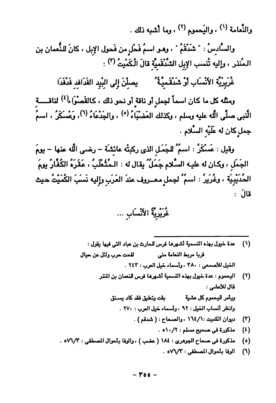 ومثله كل ما كان اسمًا لجمل أو ناقة أو نحو ذلك، كالقصواء لناقة النبي صلى الله عليه وسلم، وكذلك العضباء، والجدعاء، وعسكر، اسم جملٍ كان له عليه السلام.