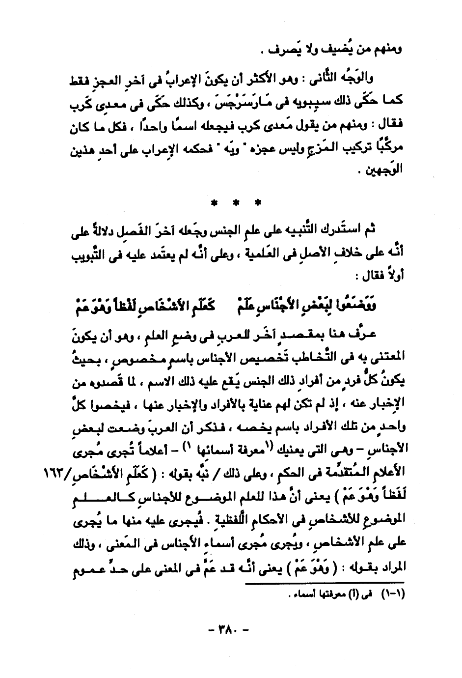 ووضعوا لبعض الأجناس علم ... كعلم الأشخاص لفظا وهو عم