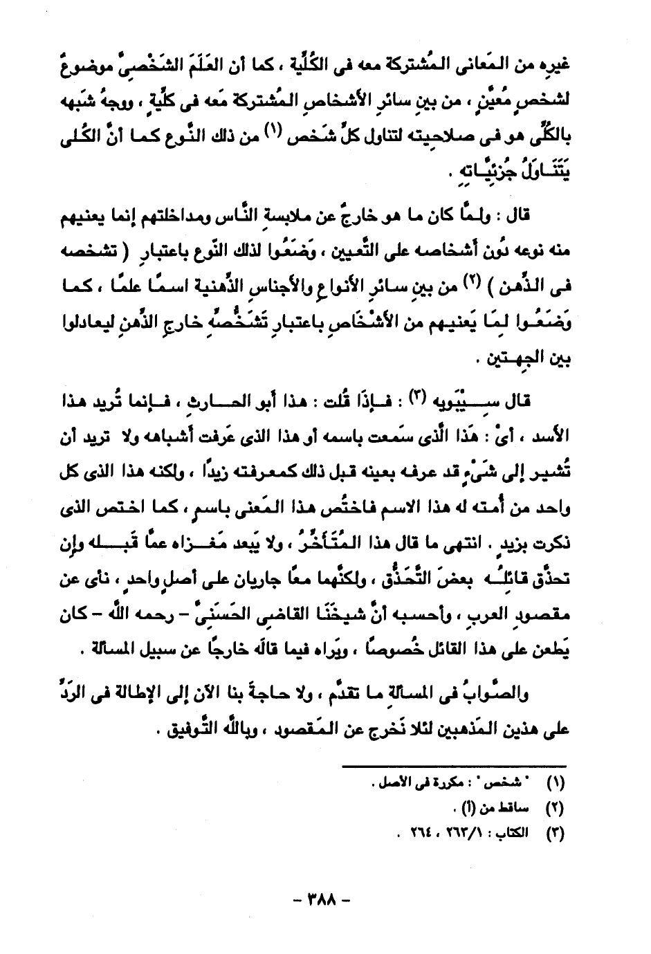 غيره من المعاني المشتركة معه في الكلية، كما أن العلم الشخصي موضوع لشخص معين، من بين سائر الأشخاص المشتركة معه في كلية، ووجه شبهه بالكلي هو في صلاحيته لتناول كل شخص من ذلك النوع كما أن الكلي يتناول جزيئاته.