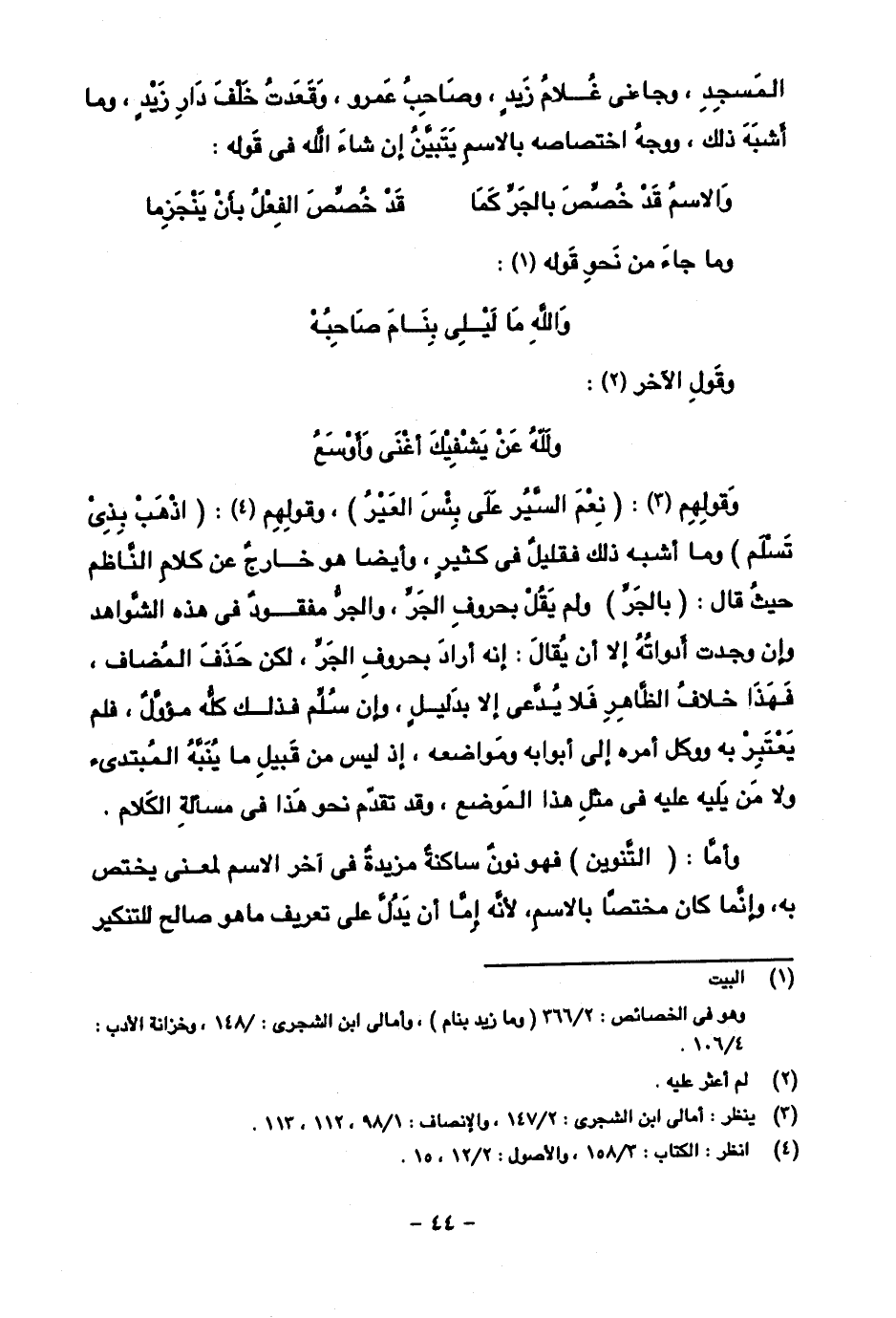 وأماك (التنوين) فهو نون ساكنة مزيدة في آخر الاسم لمعنى يختص به، وإنما كان مختصا بالاسم، لأنه إما أن يدل على تعريف ماهو صالح للتنكير
