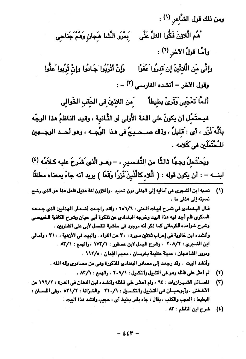 ويحتمل وجها ثالثا من التفسير، -وهو الذي شرح عليه كلامه ابنه-: أن يكون قوله: (اللاء كالذين نزرا وقعا) يريد أنه جاء بمعناه مطلقا
