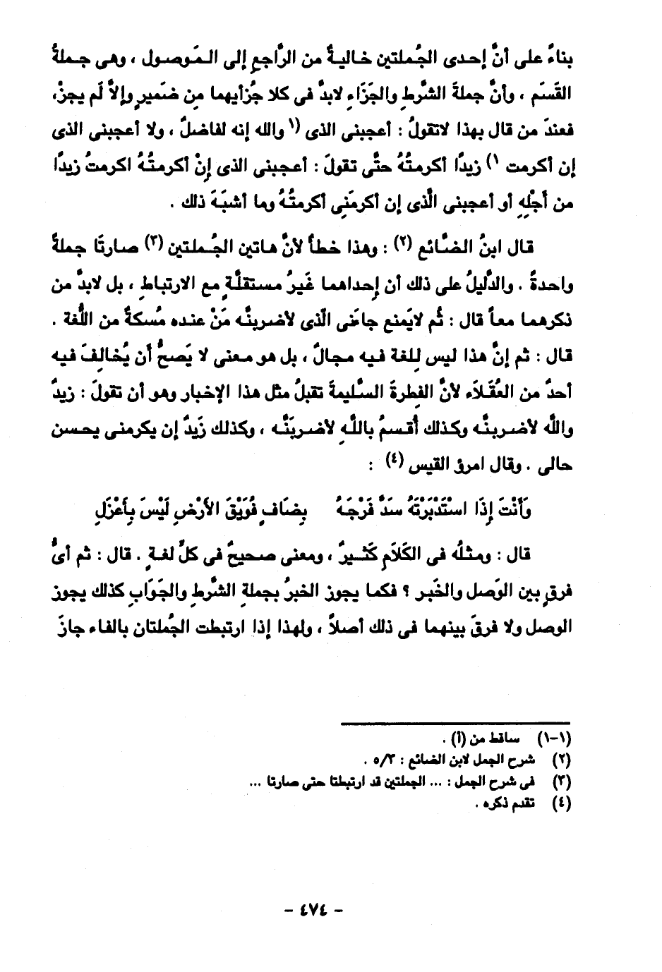 قال: ومثله في الكلام كثير، ومعنى صحيح في كل لغة. قال: ثم أي فرق بين الوصل والخبر؟ فكما يجوز الخبر بجملة الشرط والجواب كذلك جوز الوصل ولا فرق بينهما في ذلك أصلا، ولهذا إذا ارتبطت الجملتان بالفاء جاز