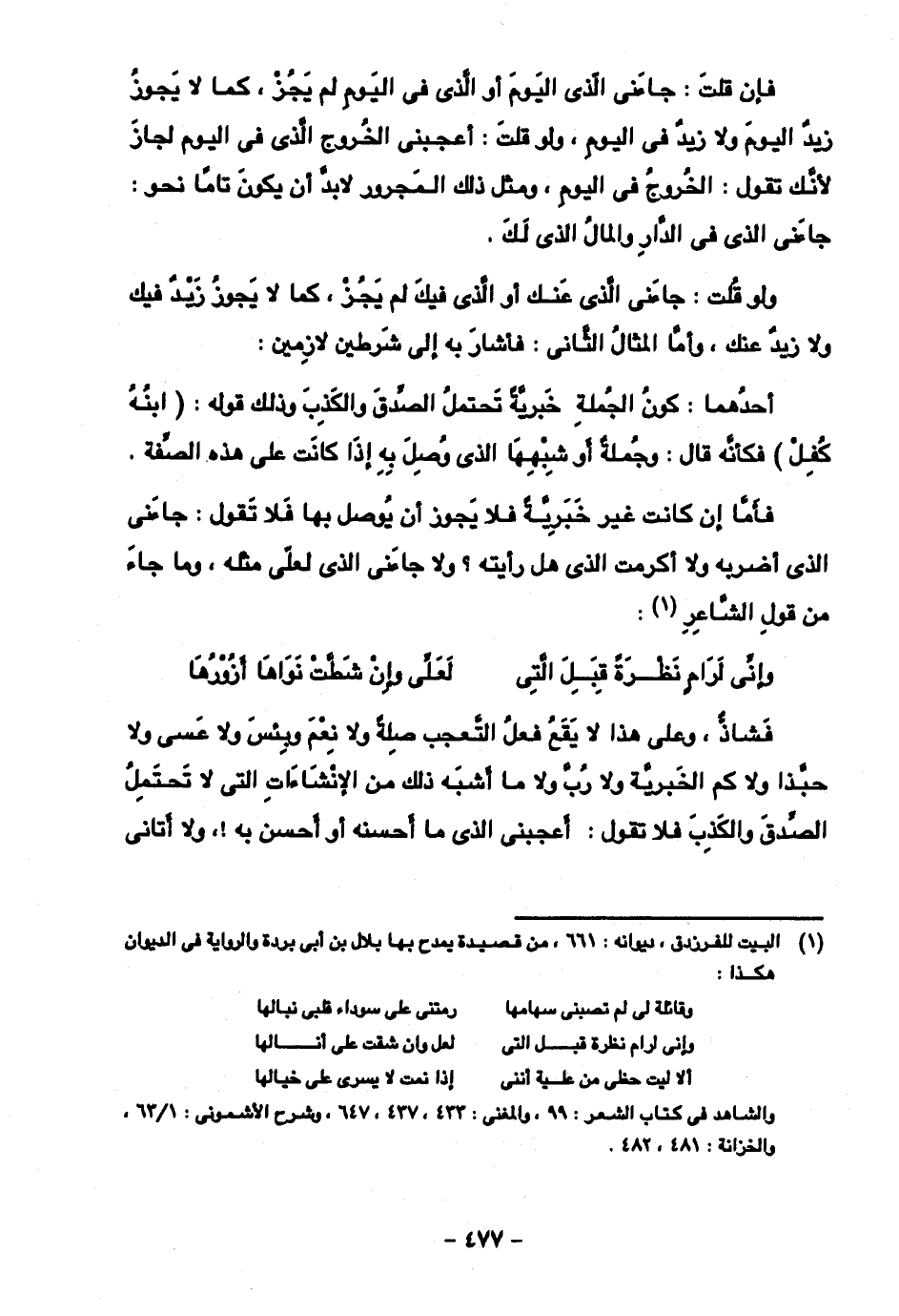 فشاذ، وعلى هذا لا يقع فعل التعجب صلة ولا نعم وبئس ولا عسى ولا حبذا ولا كم الخبرية ولا رب ولا ما أشبه ذلك من الإنشاءات التي لا تحتمل الصدق والكذب فلا تقول: أعجبني الذي ما أحسنه أو أحسن به، ولا أتاني