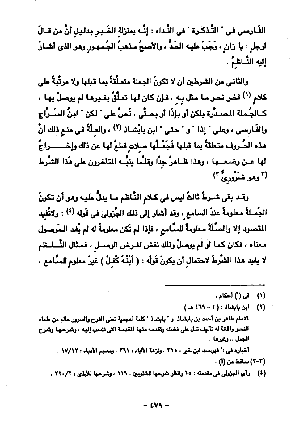 وقد بقى شرط ثالث ليس في كلام الناظم ما يدل عليه وهو أن تكون الجملة معلومة عند السامع، وقد أشار إلى ذلك الجزولي في قوله: ولا تفيد المقصود إلا والصلة معلومة للسامع، فإذا لم تكن معلومة له لم يفد الموصول معناه، فكان كما لو يوصل وذلك نقض لغرض الوصل، فمثال النلظم لا يفيد هذا الشرط لاحتمال أن يكون قوله: (ابنه كفل) غير معلوم للسامع،