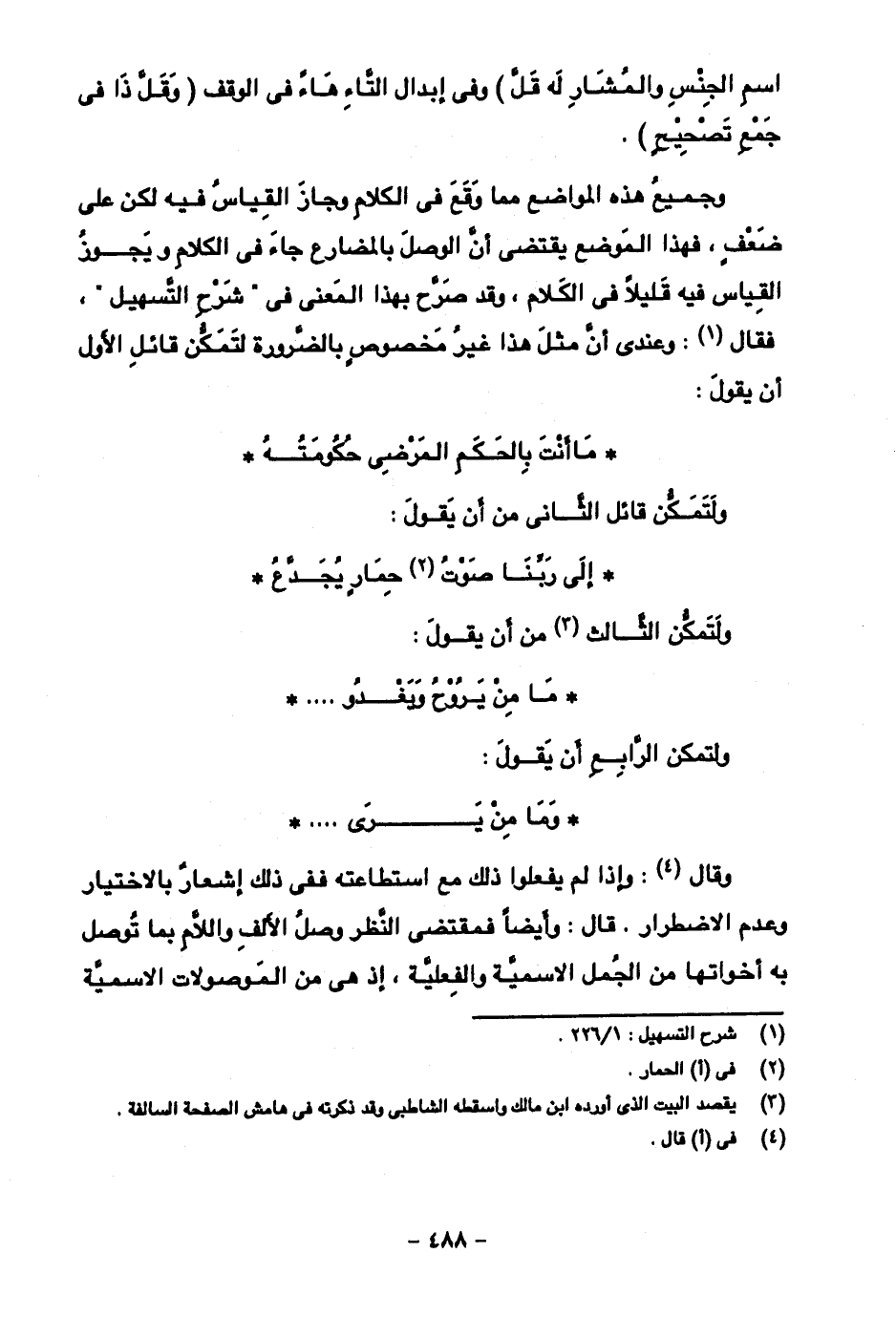 وجميع هذه المواضع مما وقع في الكلام وجاز القياس فيه لكن على ضعف، فهذا الموضع يقتضى أن الوصل بالمضارع جاء في الكلام ويجوز القياس فيه قليلا في الكلام، وقد صرح بهذا المعنى في "شرح التسهيل"، فقال: وعندي أن أمثل هذا غير مخصوص لا بالضرورة لتمكن قائل الأول أن يقول: