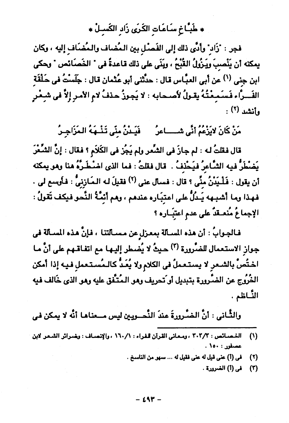 قال فقلت له: لم جاز في الشعر ولم يجز في الكلام؟ فقال: إن الشعر يضطر فيه الشاعر فيحذف. قال فقلت: فما الذي اضطره هنا وهو يمكنه أن يقول: فليدن مني؟ قال: فسأل عني فقيل له المازني: فأوسع لي. فهذا وما أشبهه يدل على اعتباره عندهم، وهم أئمة النحو فيكف تقول: الإجماع منعقد على عدم اعتباره؟