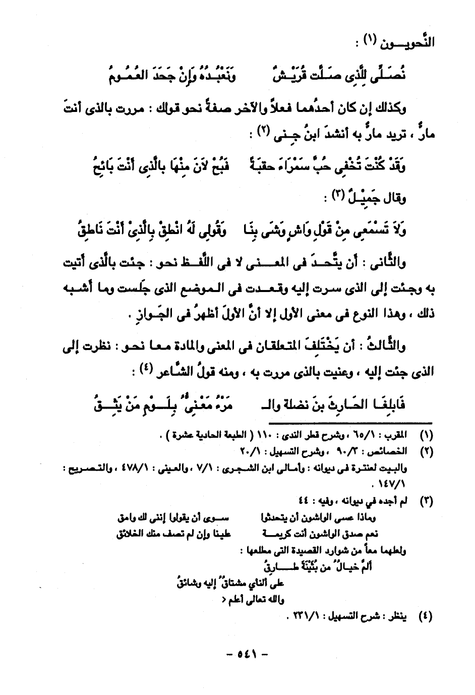 والثالث: أن يختلف المتعلقان في المعنى والمادة معا نحو: نظرت إلى الذي جئت إليه، وعنيت بالذي مررت به، ومنه قول الشاعر: