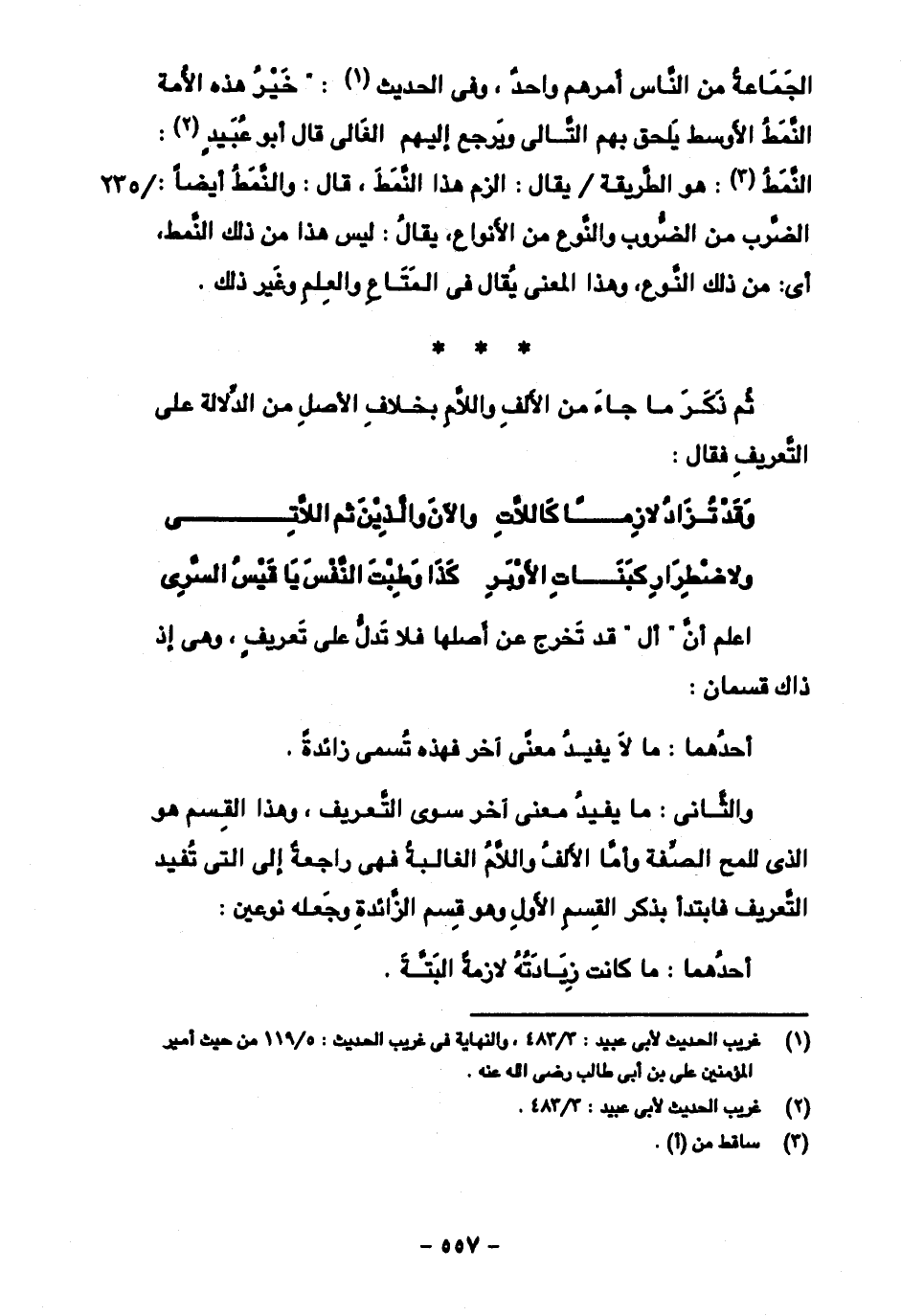 اعلم أن "أل" قد تخرج عن أصلها فلا تدل على تعريف، وهي إذ ذاك قسمان: