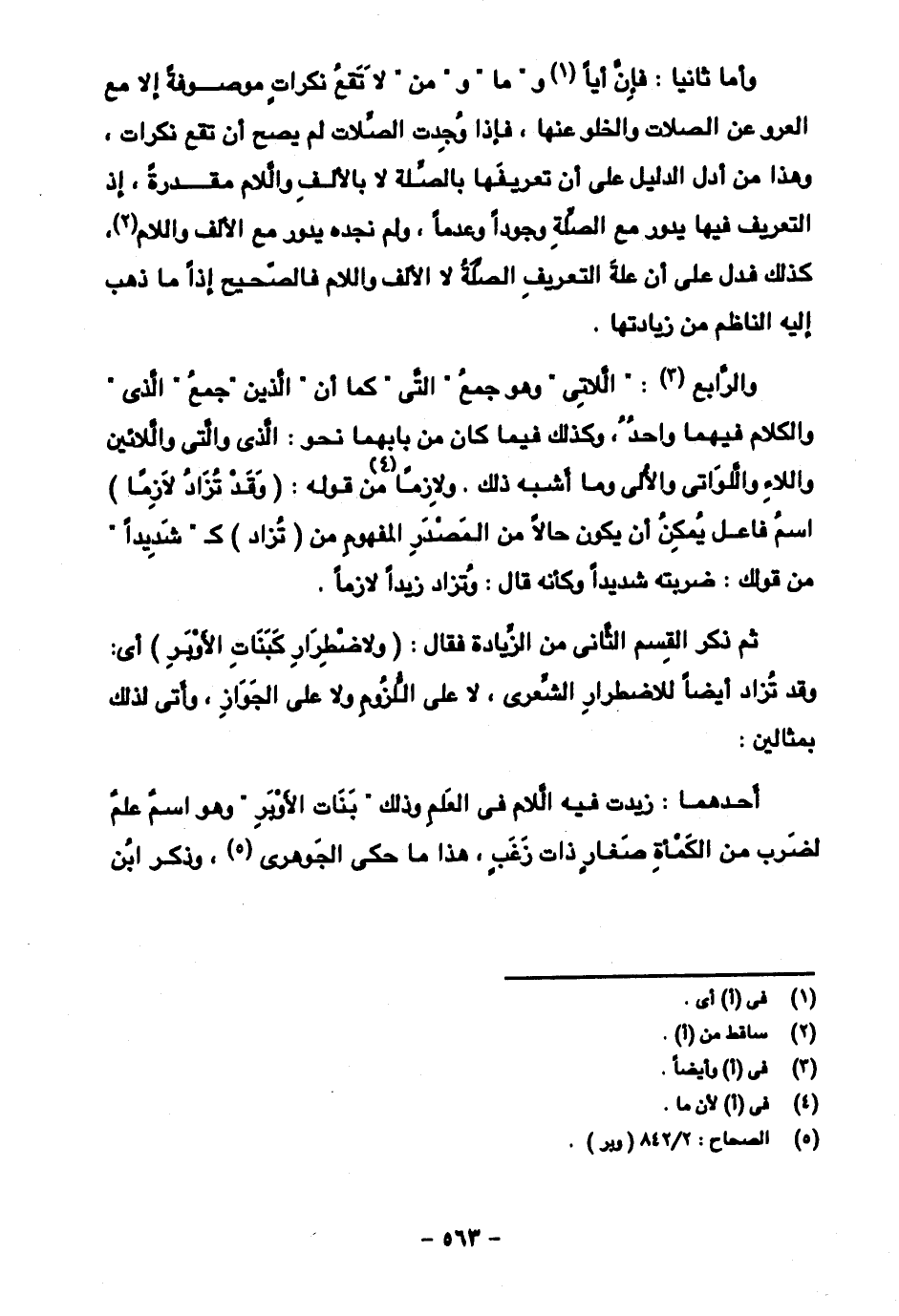 وأما ثانياً: فإن أيا و "ما" و "من" لا تقع نكرات موصوفة إلا مع العرو عن الصلات والخلو عنها، فإذا وجدت الصلات لم يصح أن تقع نكرات، وهذا من أدل الدليل على أن تعريفها بالصلة لا بالألف واللام مقدرة، إذ التعريف فيها يدور مع الصلة وجودا وعدما، ولم نجده يدور مع الألف واللام، كذلك فدل على أن علة التعريف الصلة لا الألف واللام فالصحيح إذا ما ذهب إليه الناظم من زيادتها.