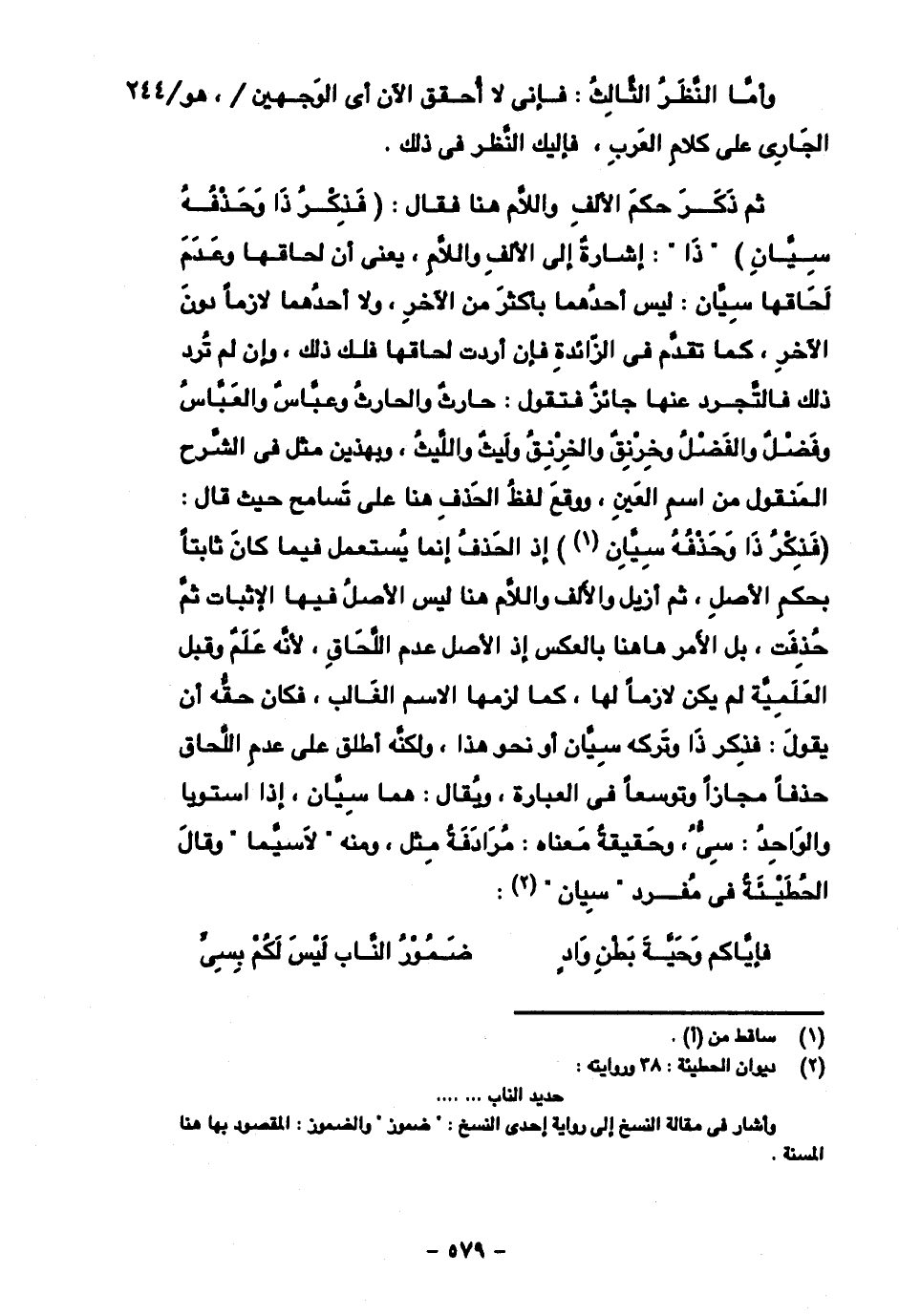وأما النظر الثالث: فإني لا أحقق الآن أي الوجهين/، هو الجاري على كلام العرب، فإليك النظر في ذلك.